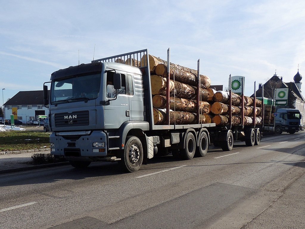 MAN TGA26.480 aus dem Landkreis Freyung ist beladen mit Fichtenstämmen aus Österreich; 130306