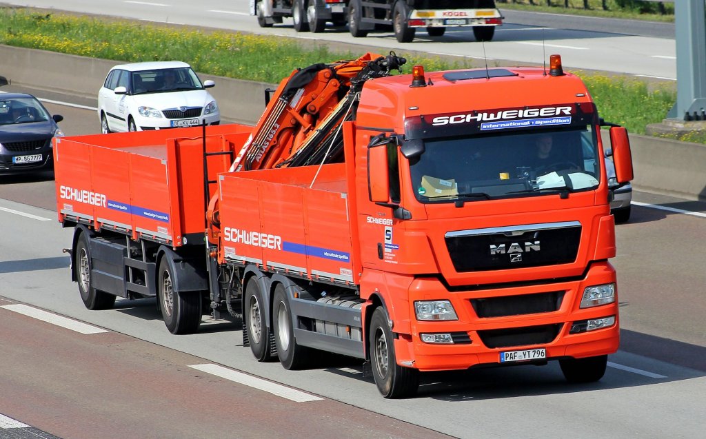 MAN-Hängerzug aufgenommen am 02.07.2013 auf der A5 beim Flughafen Frankfurt.