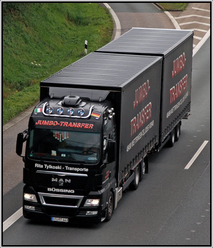 MAN TGX der "JUMBO TRANSFER" bei Lüdenscheid. (05.09.2008)