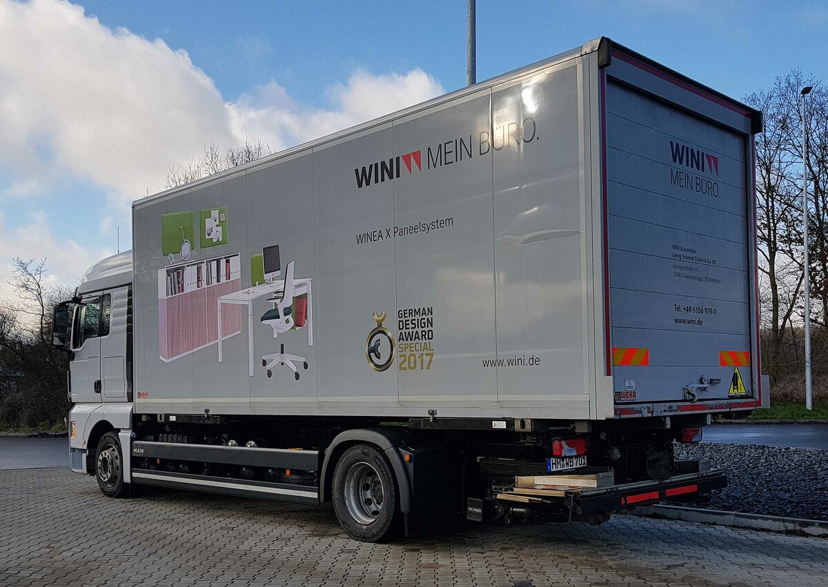 =MAN TGX des Büromöbelherstellers WINI rastet im Dezember an der A 7