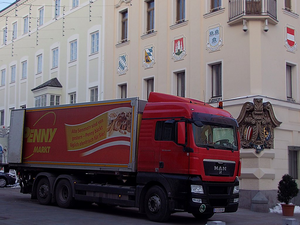 MAN TGX 26.440; aufgrund seiner Zustelltour vor dem Rieder Rathaus;110105
