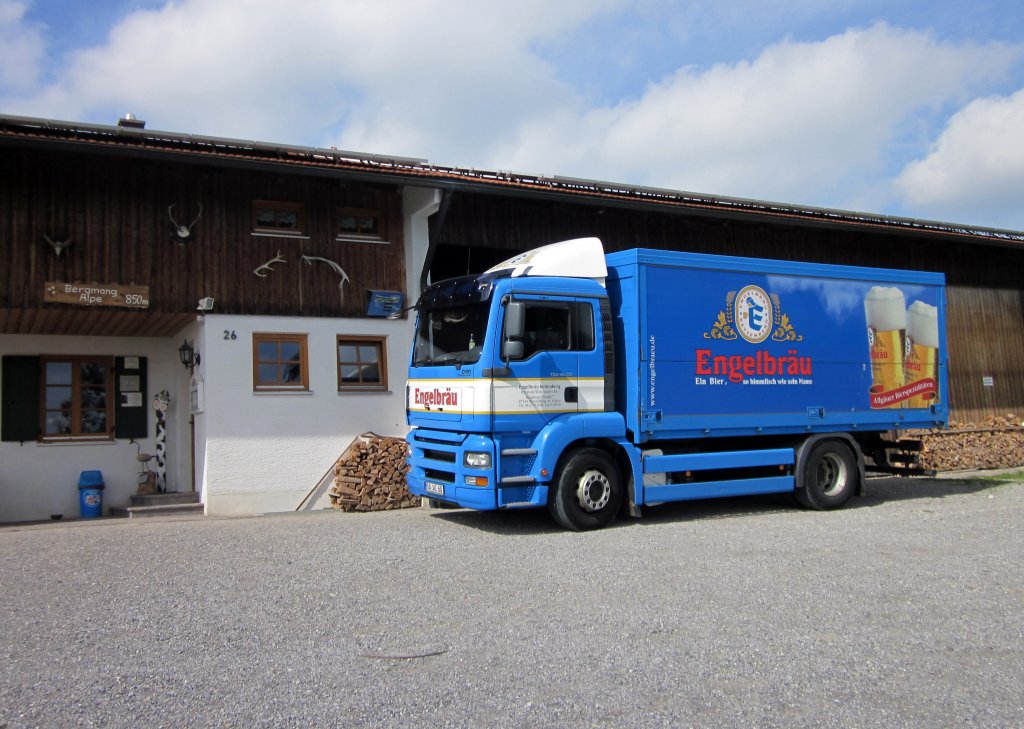MAN TGA 18.310 mit Getränke-Aufbau am 22.09.2011 auf der Bergmang-Alpe auf 850m im schönen Sonnendurchfluteten Allgäu. Dieses Fahrzeug brachte u.a. frisches Weissbier.