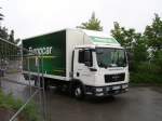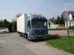 Diesen MAN-Kasten-LKW,von einer Berliner Umzugsfirma,fotografierte ich,am 08.Dezember 2011,als Dieser am Straßenrand in Bergen/Rügen stand.
