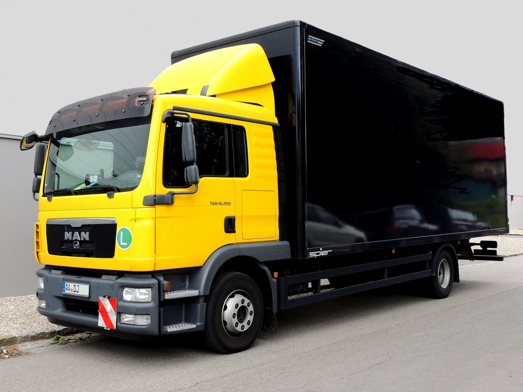 MAN TGM 15.250, ist mit Equipment für die Kastelruther-Spatzen beim Rieder Veranstaltungszentrum eingetroffen; 130523