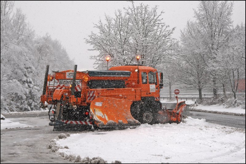 Das Räumen der Parkplatze ist teilweise recht aufwendig, da beim Rückwärtssetzen die Pflüge gehoben und anschließend wieder gesenkt werden müssen. (MAN FE360A)
