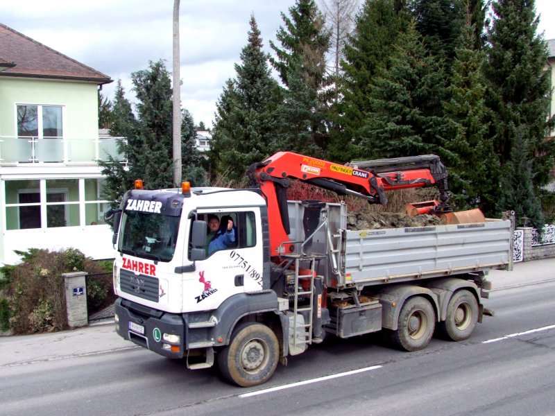 MAN TGA33.440 kehrt nach exakt 15Minuten vollbeladen von der nahegelegenen Kanalbaustelle zurück; 090327
