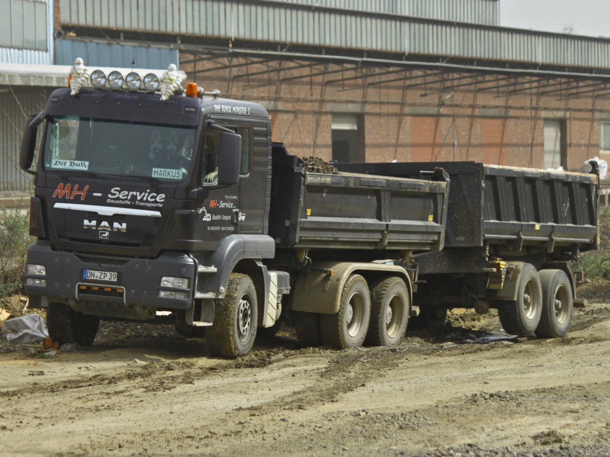 MAN TGS 26.440 mit Tandemkipper am 31.03.2014 auf der Baustelle in Aachen West.