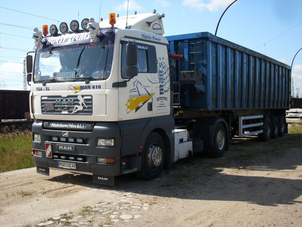 Auf der Ladestraße von Bergen/Rügen stand,am 13.Juli 2009,dieser MAN-Kipper.