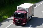 Ein MAN Kühlwagen von H&R Gastro am 28.6.24 auf der A8 in Matten b. Interlaken.