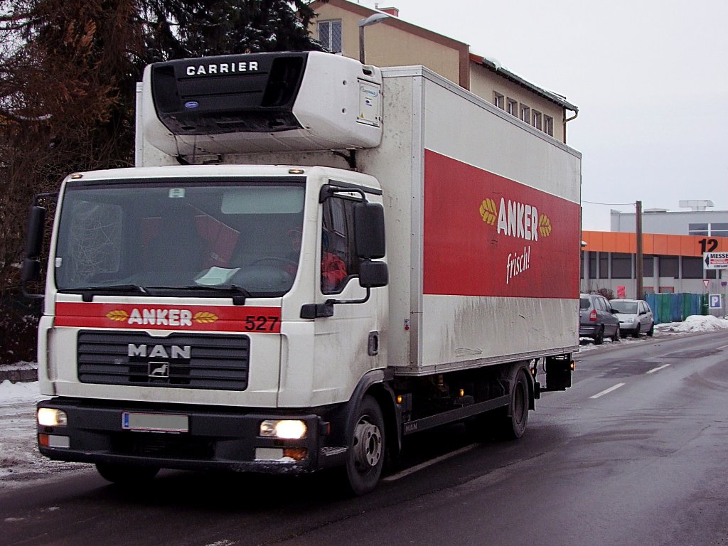 MAN Kühltransporter unterwegs in der Stadt Basel am 16.04.2025