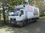 ALDI MARKT MAN TGA LX 18.310 Wg.5 QUELLBRUNNEN ® Werbung auf dem 2achs Kühlkoffer Sattelauflieger 13,01,2013