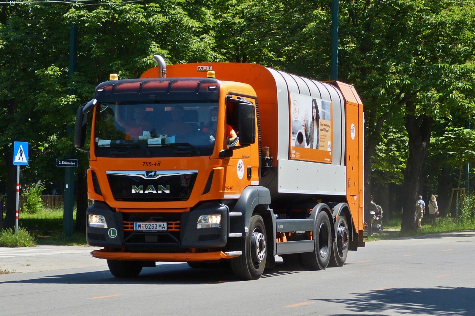 MAN Müllentsorger in der Prater Parkanlage in Wien unterwegs. 06.2023