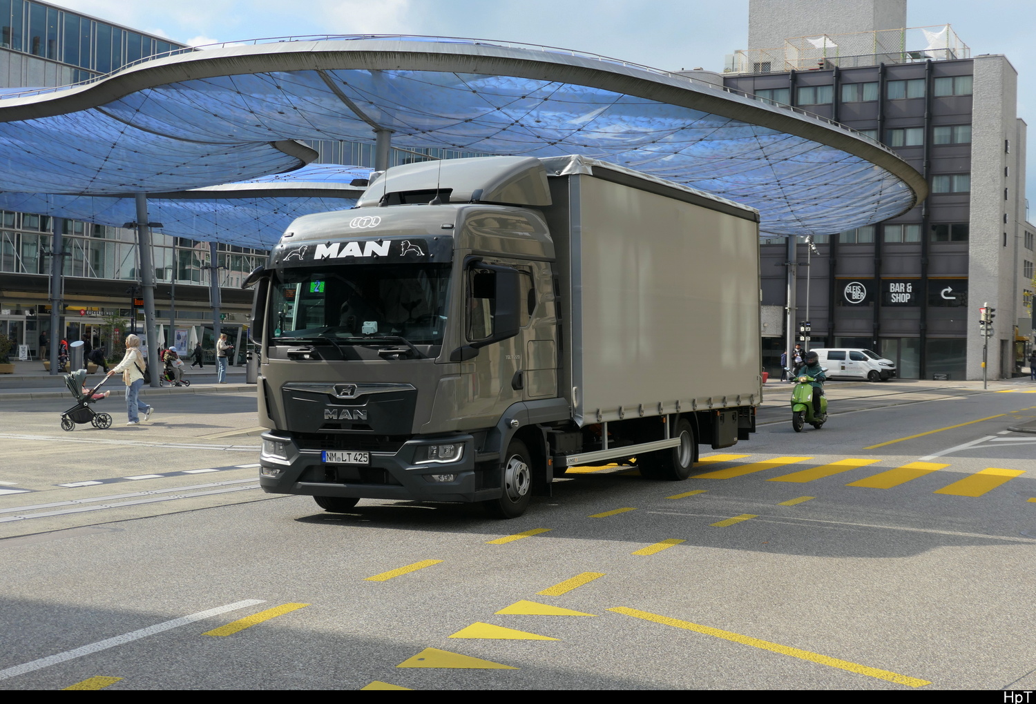Dieser militärische Lastkraftwagen der MAN HX-Serie 4x4 und ein Scania Sattelzug waren Mitte Juli 2024 in Fairford zu sehen.