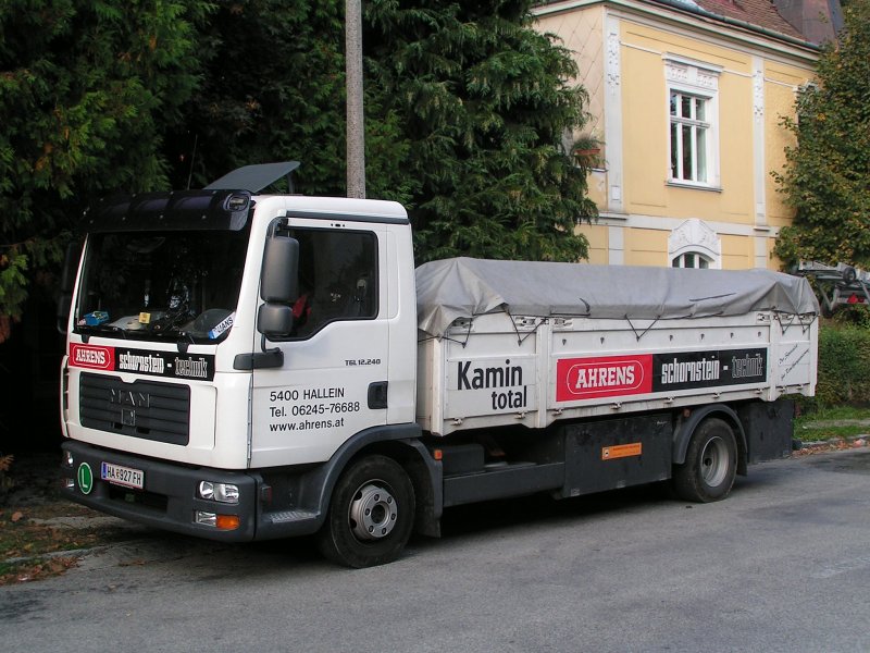 MAN TGL12.240 einer Schornsteinsanierungsfirma kurz vor dem Verlassen der Baustelle in Ried i.I.;090929