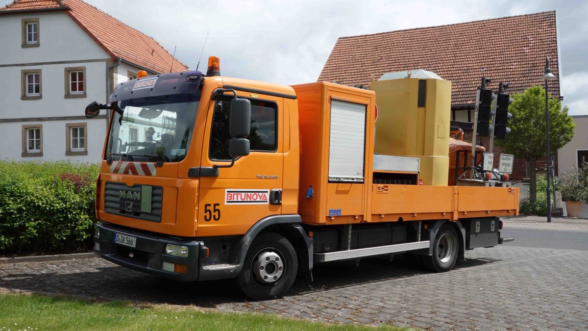 MAN TGL 12.240 der Firma Bitunova als Transportfahrzeug für u. a. Baustellenbeschilderung gesehen in 36100 Petersberg-Marbach im Mai 2014
