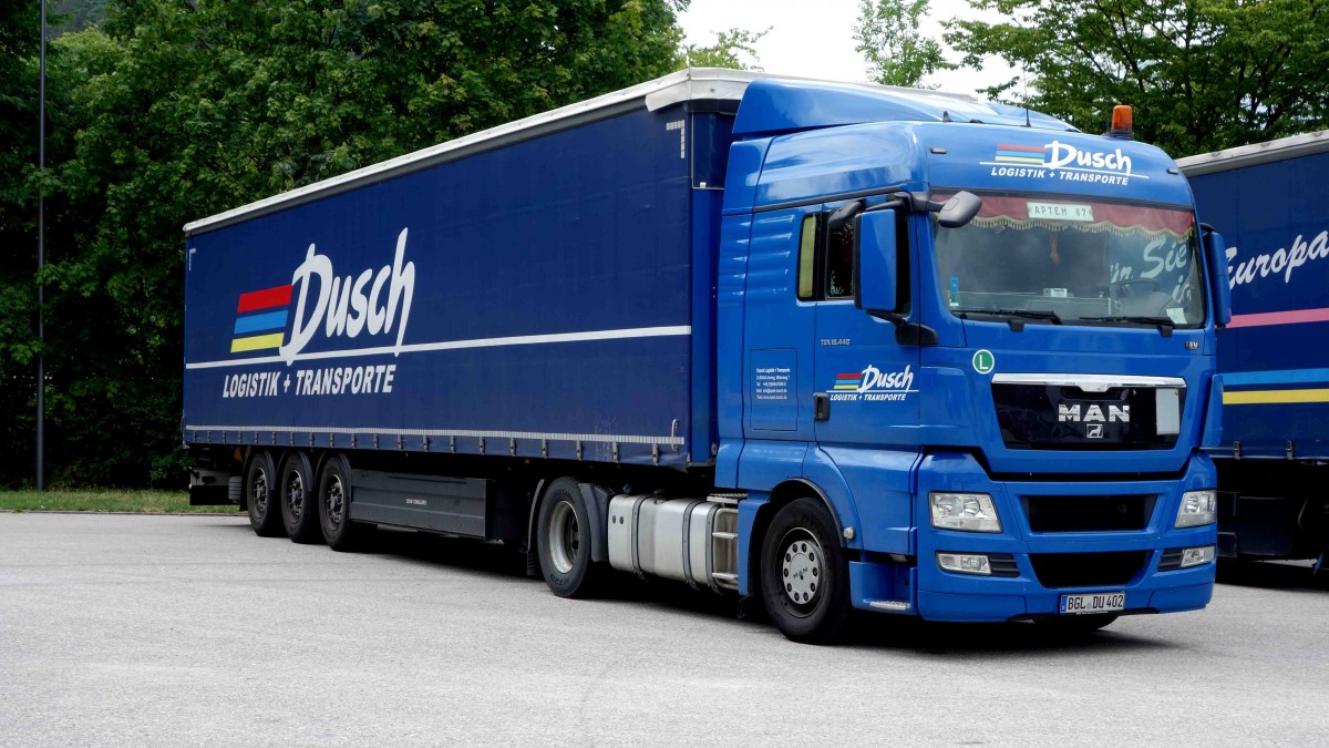 MAN von der Firma "DUSCH" steht auf einem Parkplatz in Bad Reichenhall im Juli 2015