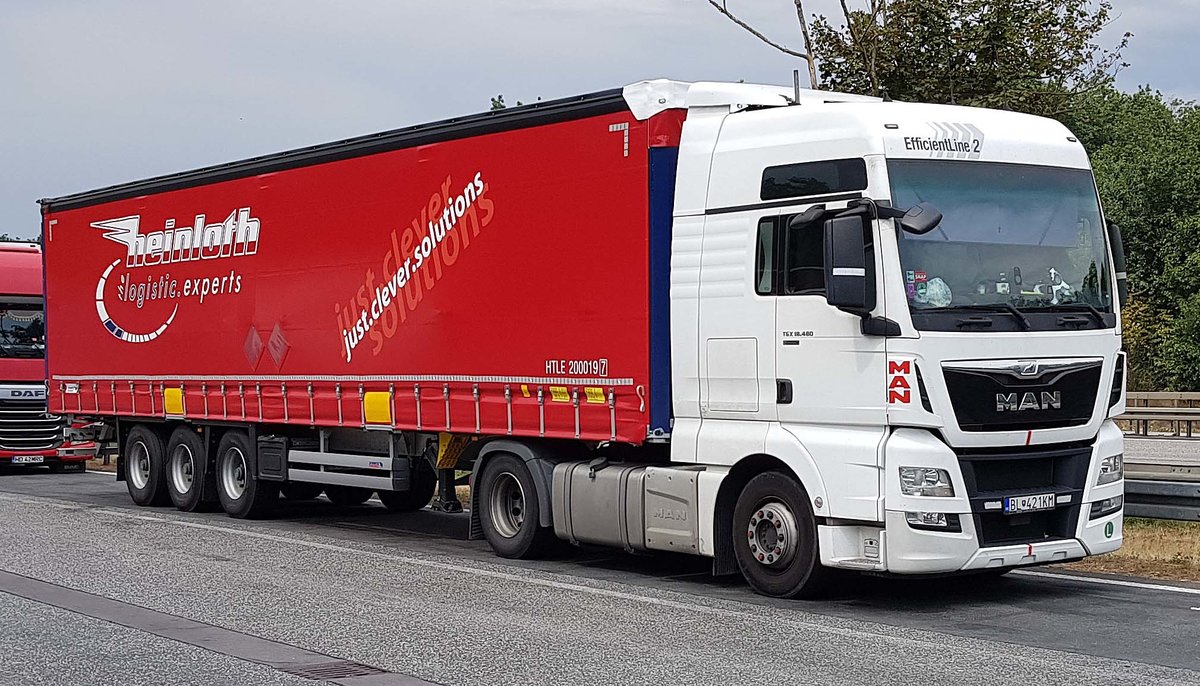 =MAN-Sattelzug mit einem Auflieger von HEINLOTH-Logistics rastet im August 2020 an der A 7