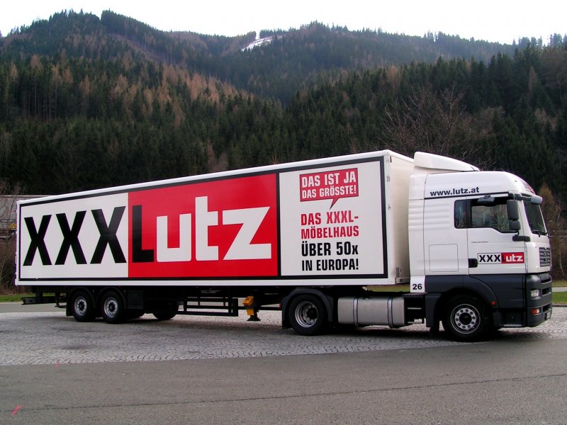 MAN-TGA18.400 eines großen Möbelhaus macht auf einem Autobahnparkplatz in der Steiermark eine kleine Pause;090407