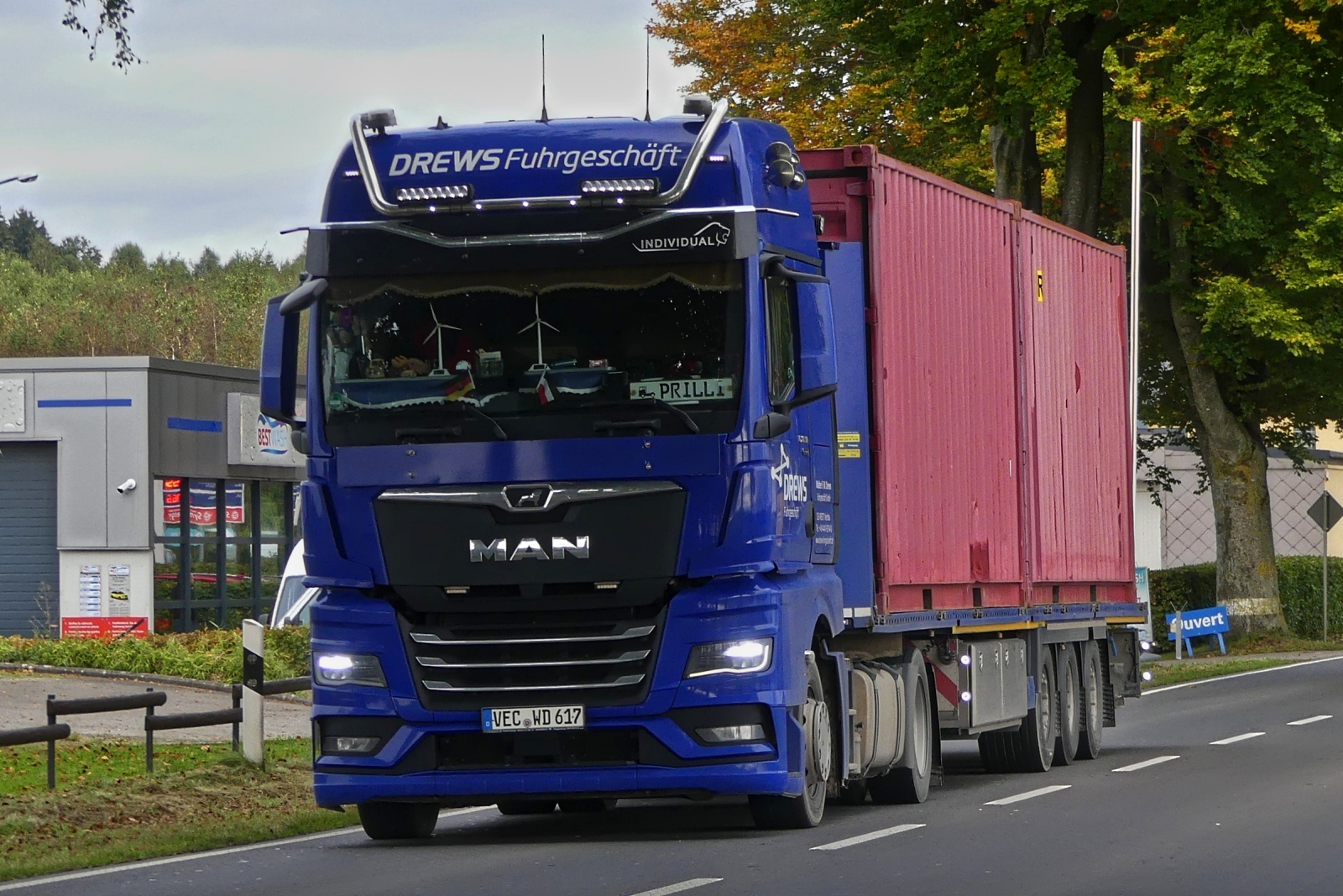 MAN Sattelzug, von Drews Fuhrgeschäfte, gesehen im Norden von Luxemburg. 14.10.2024