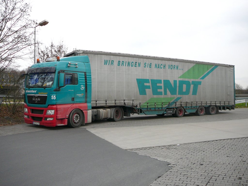 MAN TGA18.400 der Spedition ZIEGLER steht auf dem Esso-Rastplatz in Fulda-Lehnerz, 22.11.2009