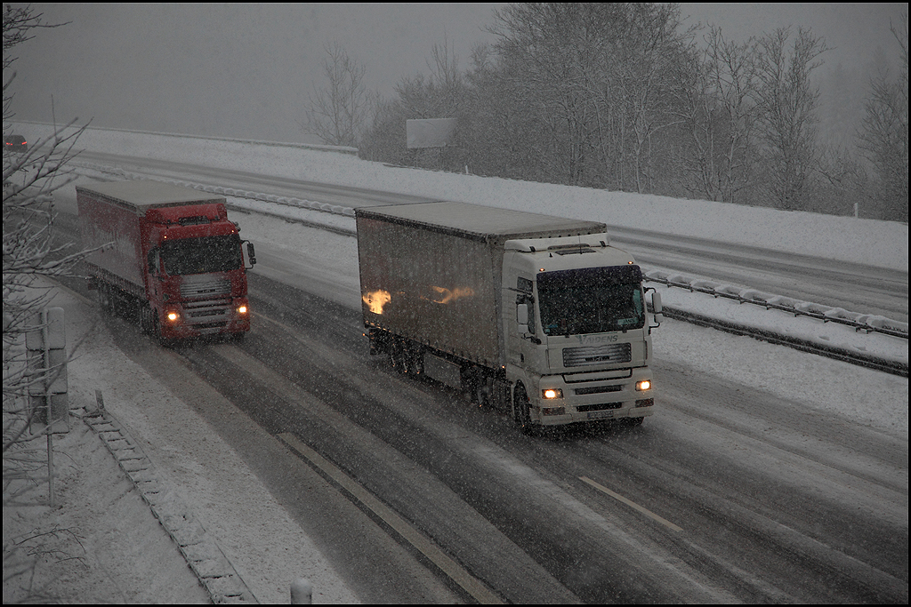 "Elefantenrennen" bei starken Schneefall auf der A45...