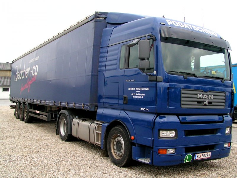 MAN-TGA18.440 mit Auflieger einer Vorarlberger Speditionsfirma; 080323