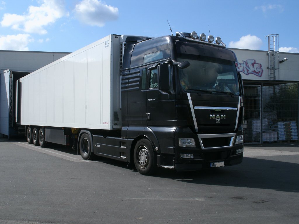 Berliner MAN-Sattelzug.am 10.Juni 2011,bei der Warenlieferung in Bergen/Rügen.