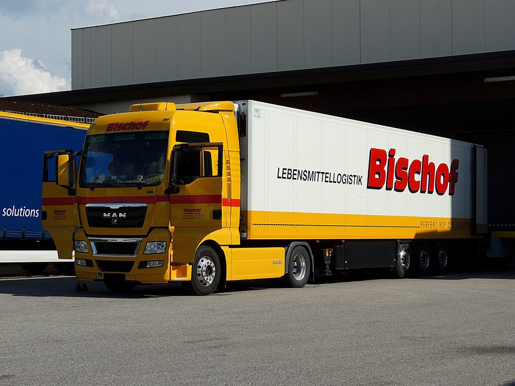 MAN-Sattel von Bischof Lebensmittellogistik erhält eine Ladung Milchpulver; 120509
