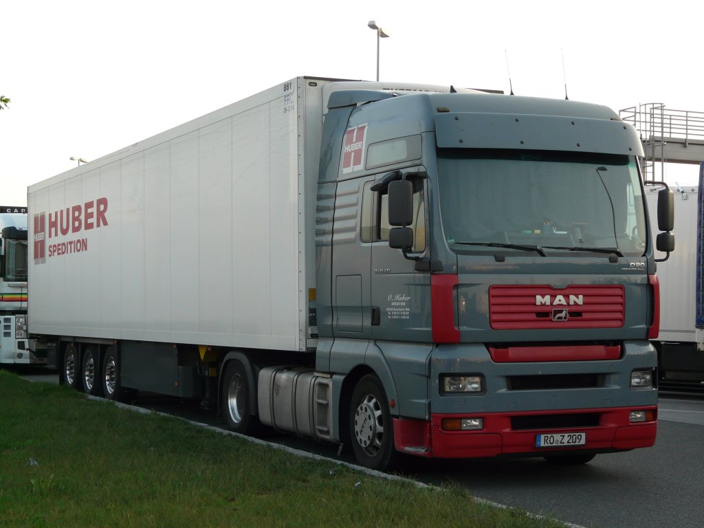 MAN TGA 18.430 mit Kühlauflieger der Spedition Huber auf der Rastanlage Nürnberg/Feucht, 01.05.2012