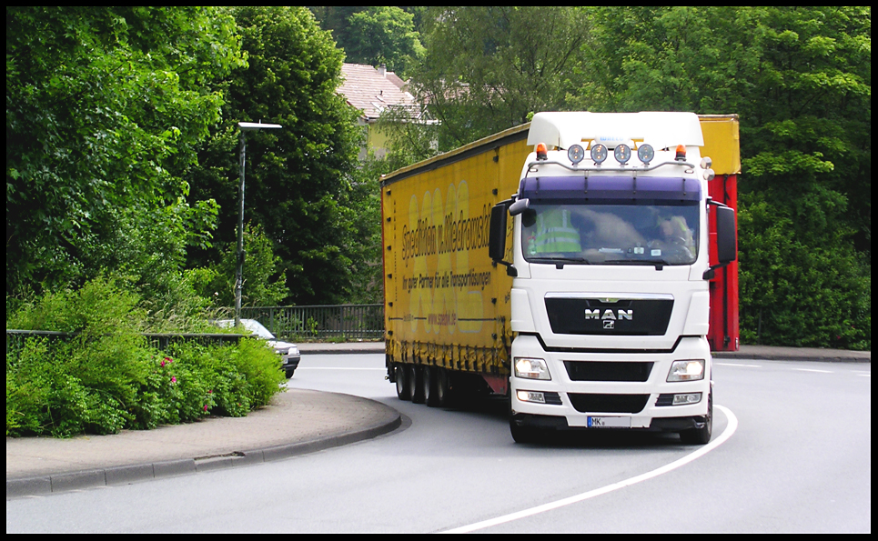 Juni 2012/ ein MAN TGX - Sattelzug macht sich an den kurvenreichen Anstieg - vermutlich zur A 1 Auffahrt Remscheid (?)