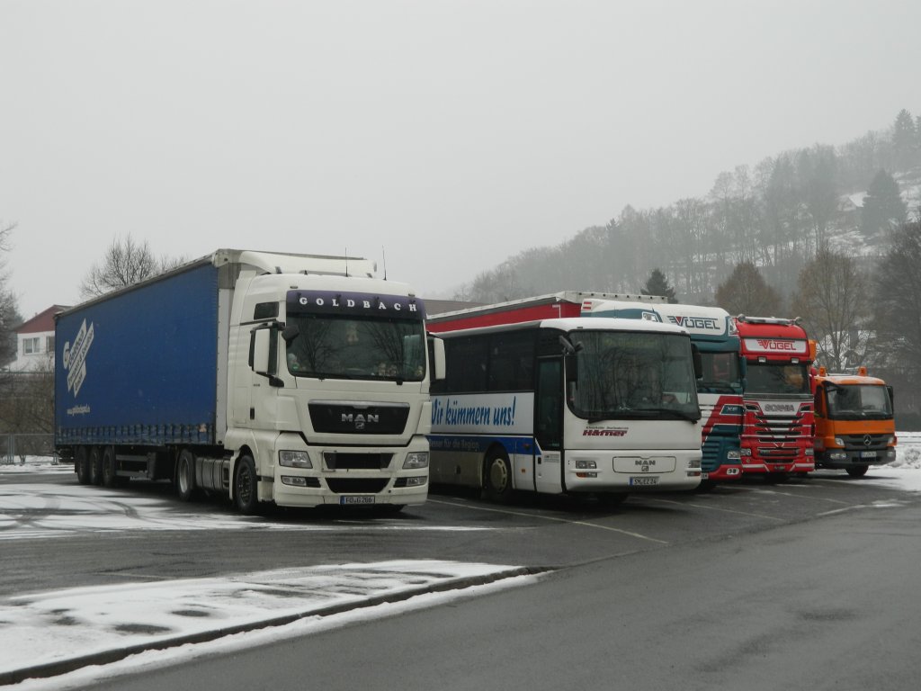 Familientreffen von 5 Lkws und einem Bus. Aufgenommen am 1. Februar 2013.