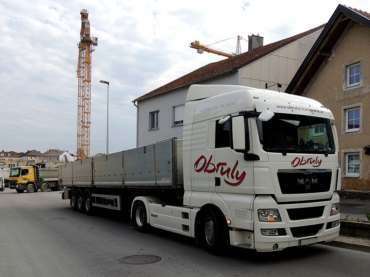 MAN von Obruly, liefert Betoneisenteile zur dzt. größten Baustelle in Ried; 140617