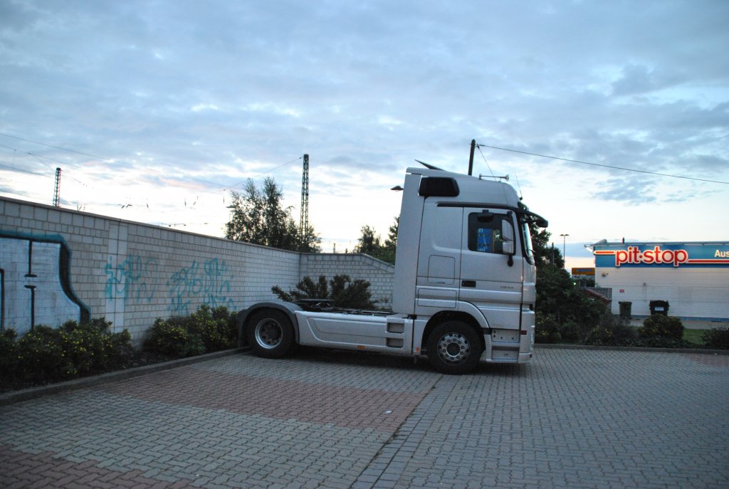 Mercedes Actros 1844-Zugmaschine von der Seite, am 16.08.2010