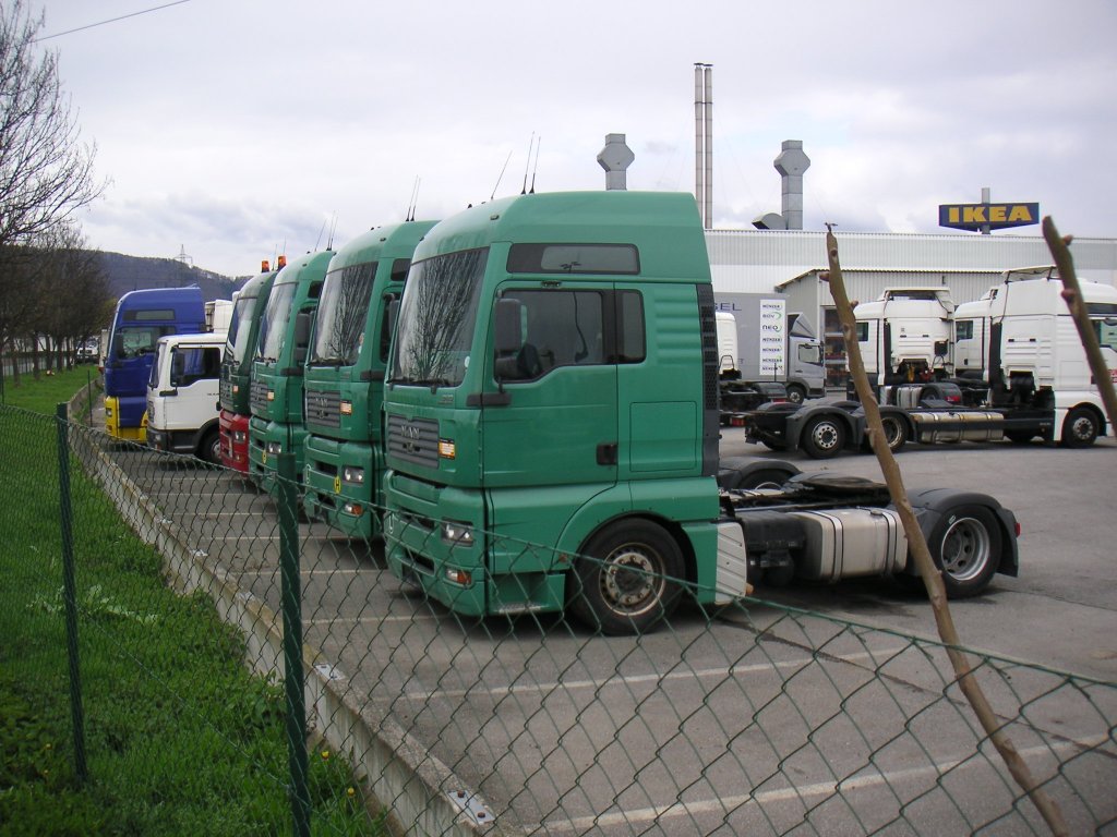 Drei ausgemusterte MAN TGA 18.430 von Gartner KG, daneben noch ein TGA 18.430 von Petschl bei der MAN Werkstatt in Graz.11.4.2010