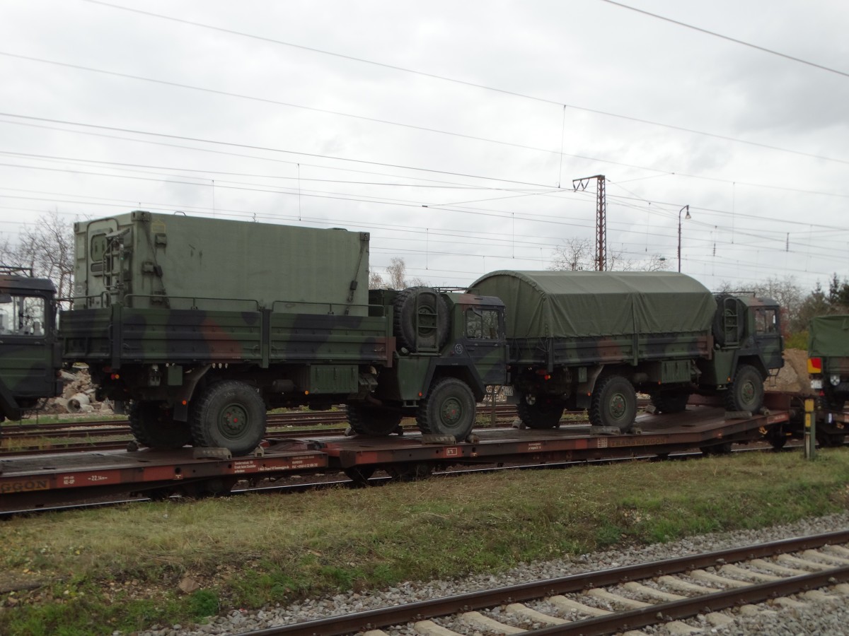 Bundeswehr MAN LKW am 14.11.15 in Mannheim Friedrichsfeld auf einen Militärzug vom Bahnsteig aus fotografiert