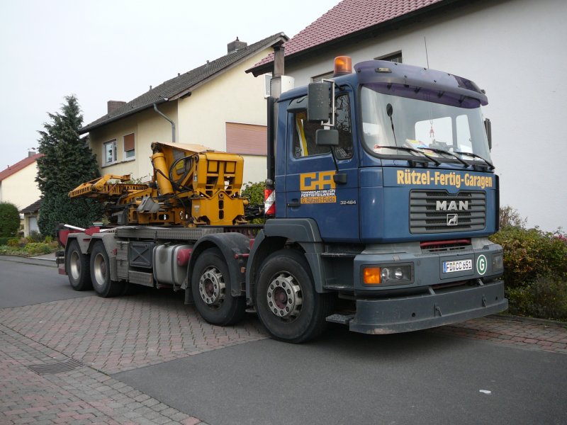 MAN 32-464 als Fertiggaragentransporter der Firma Rützel am 29.10.2008 in 36100 Petersberg - Marbach