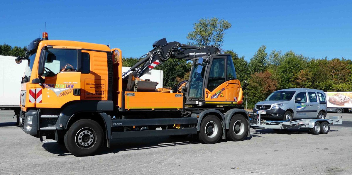 =MAN TGS 26.400 als Baggerfahrzeug der Firma "Echle exakt Bagger" rastet im September 2016 auf dem Autohof Fulda-Nord. Dem Fahrer vielen Dank und Gute Fahrt!
