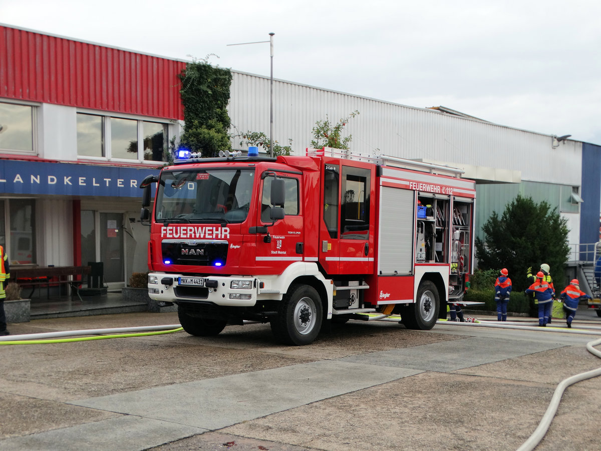 Feuerwehr Maintal MAN TGM LF10 (Neu) (Florian Maintal 4-43-1) am 01.10.16 bei der Jugendfeuerwehr Maintal Abschlussübung auf dem Gelände der Kelterei Höhl KG