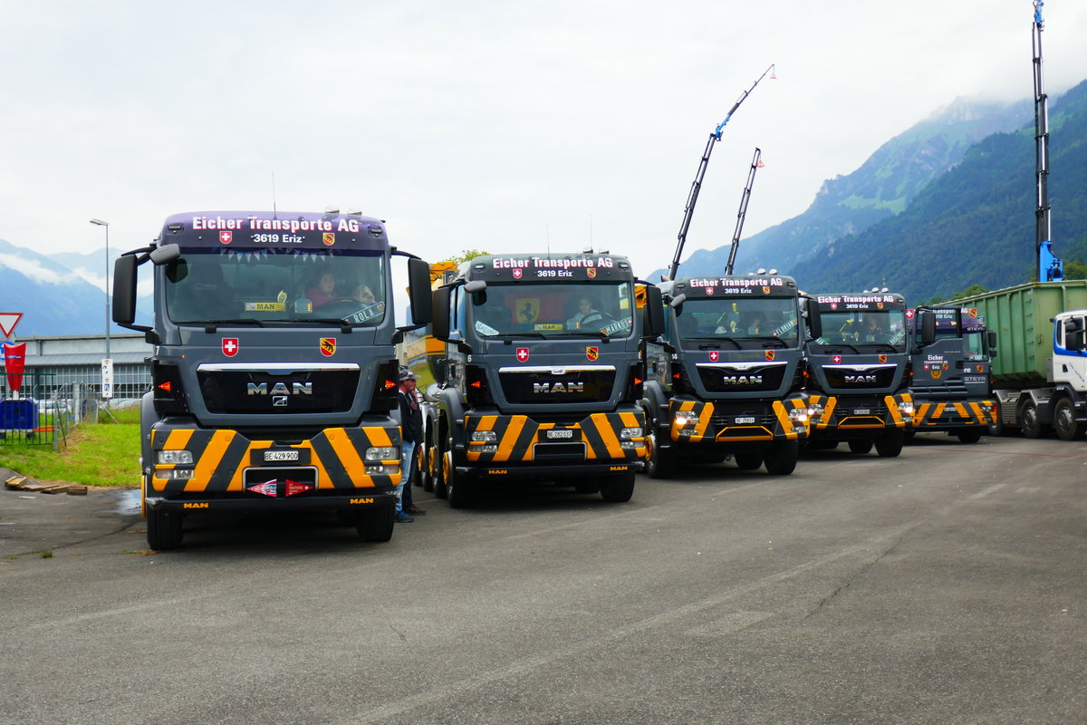 Vier MAN und ein Steyr Kipper von Eicher am 26.6.16 beim Trucker Festival Interlaken.