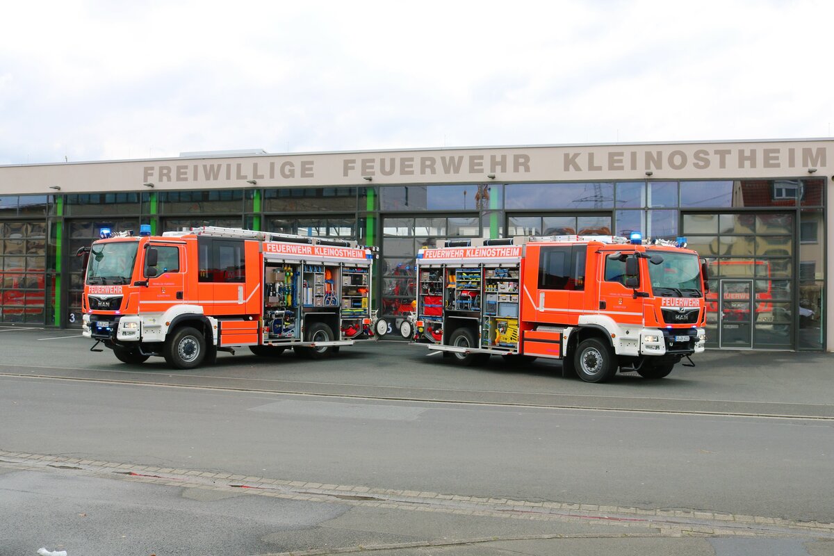Feuerwehr Kleinostheim MAN TGM HLF20-1 (Florian Kleinostheim 40/1) und HLF20-2 (Florian Kleinostheim 40/2) am 02.04.22 bei einen Fototermin
