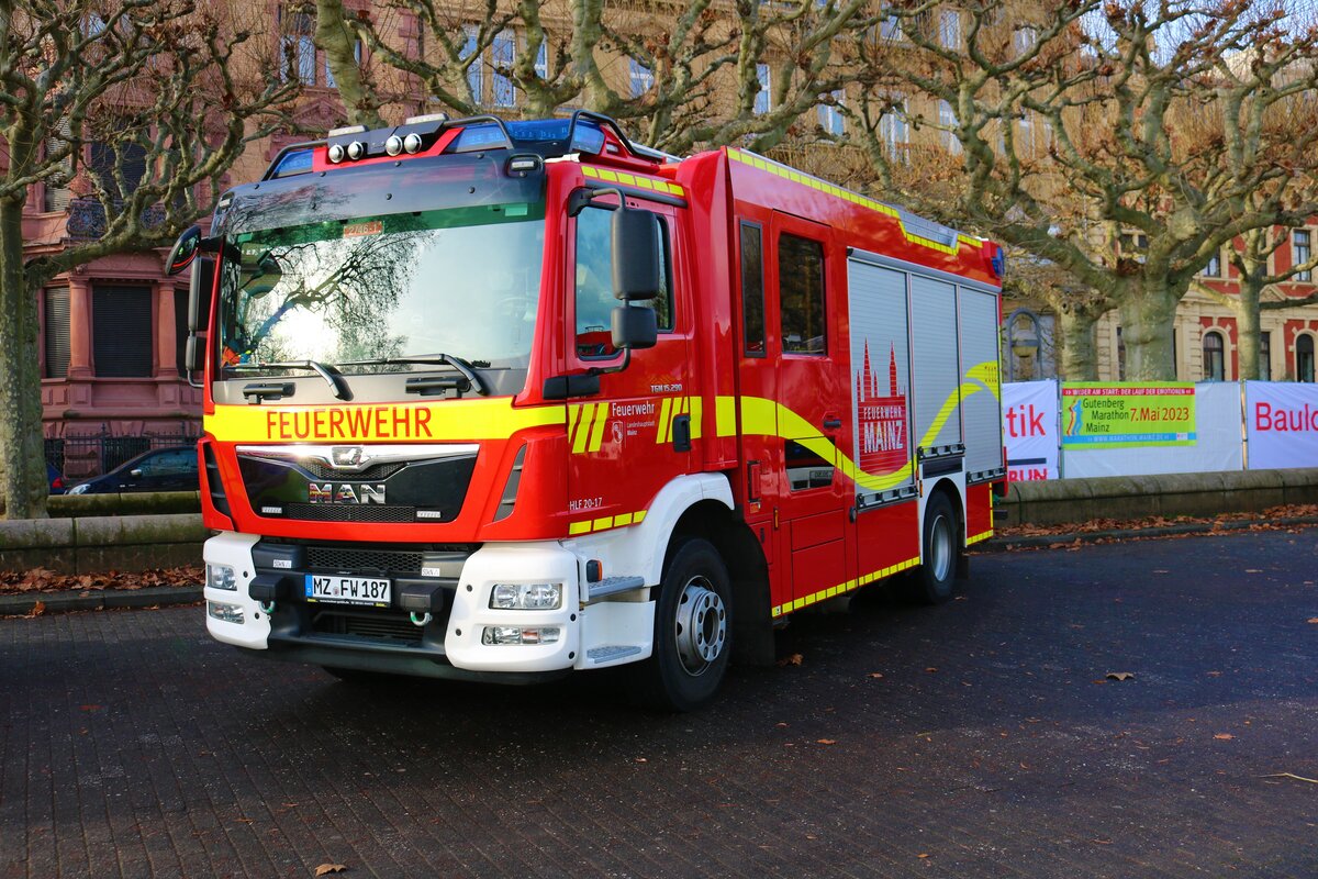Feuerwehr Mainz MAN TGM HLF 20/16 (Fahrzeug 17) 31.12.22 beim Silvesterschwimmen in Mainz am Rheinufer