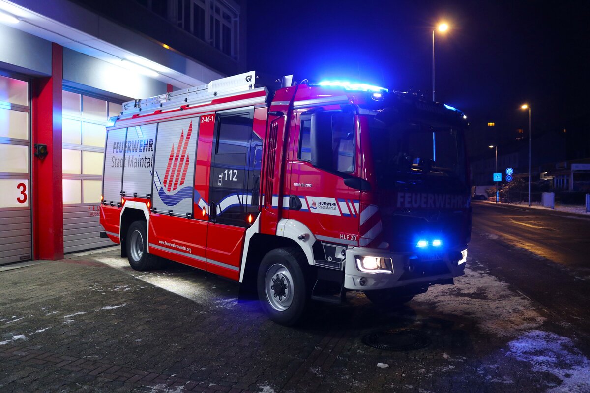 Das neue MAN TGM Rosenbauer AT HLF20/16 der Feuerwehr Maintal am 19.01.24 bei der offiziellen Vorstellung