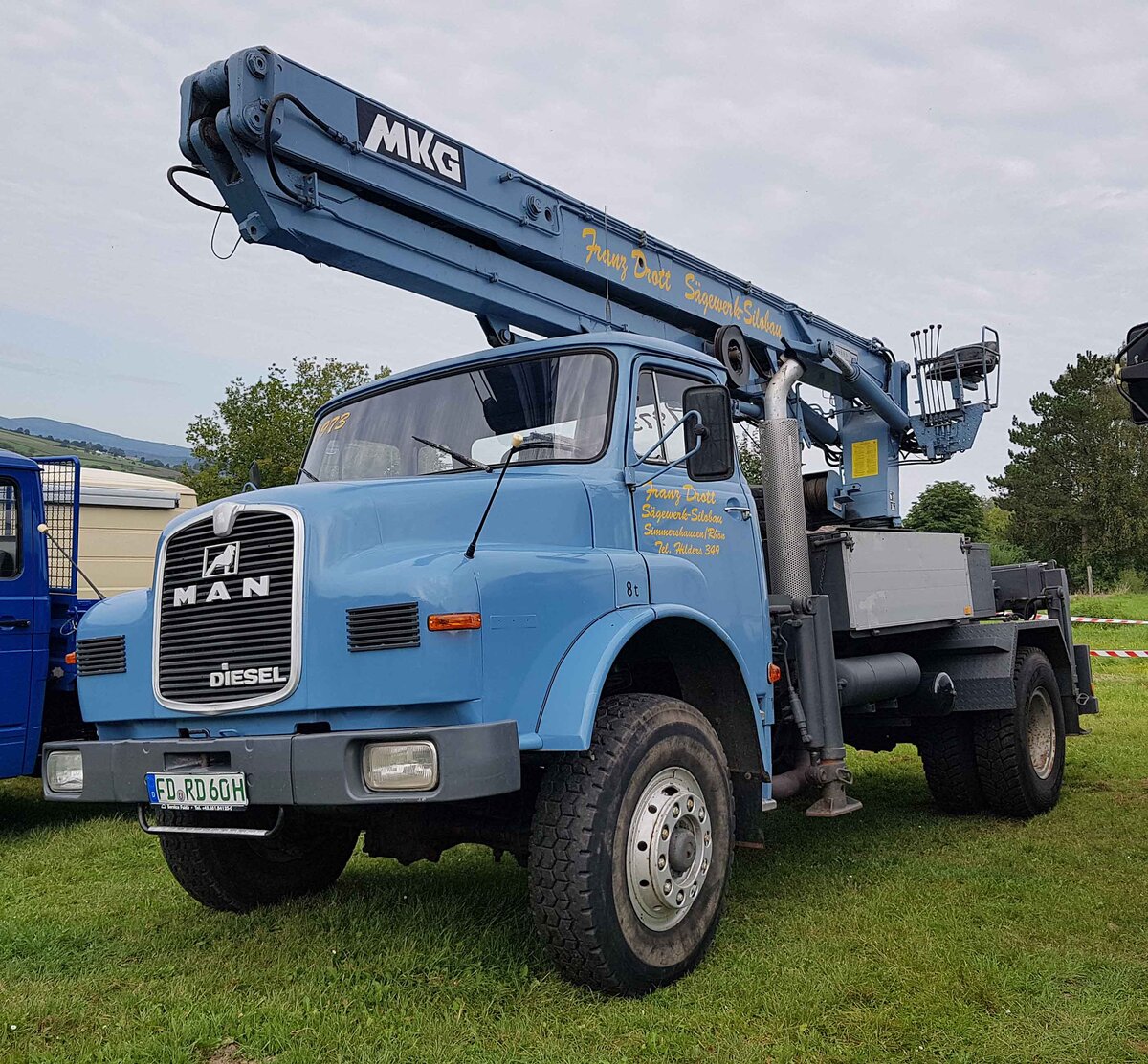 =MAN, als Kranfahrzeug, ausgestellt bei der Oldtimerveranstaltung in Tann/Rhön, 09-2023