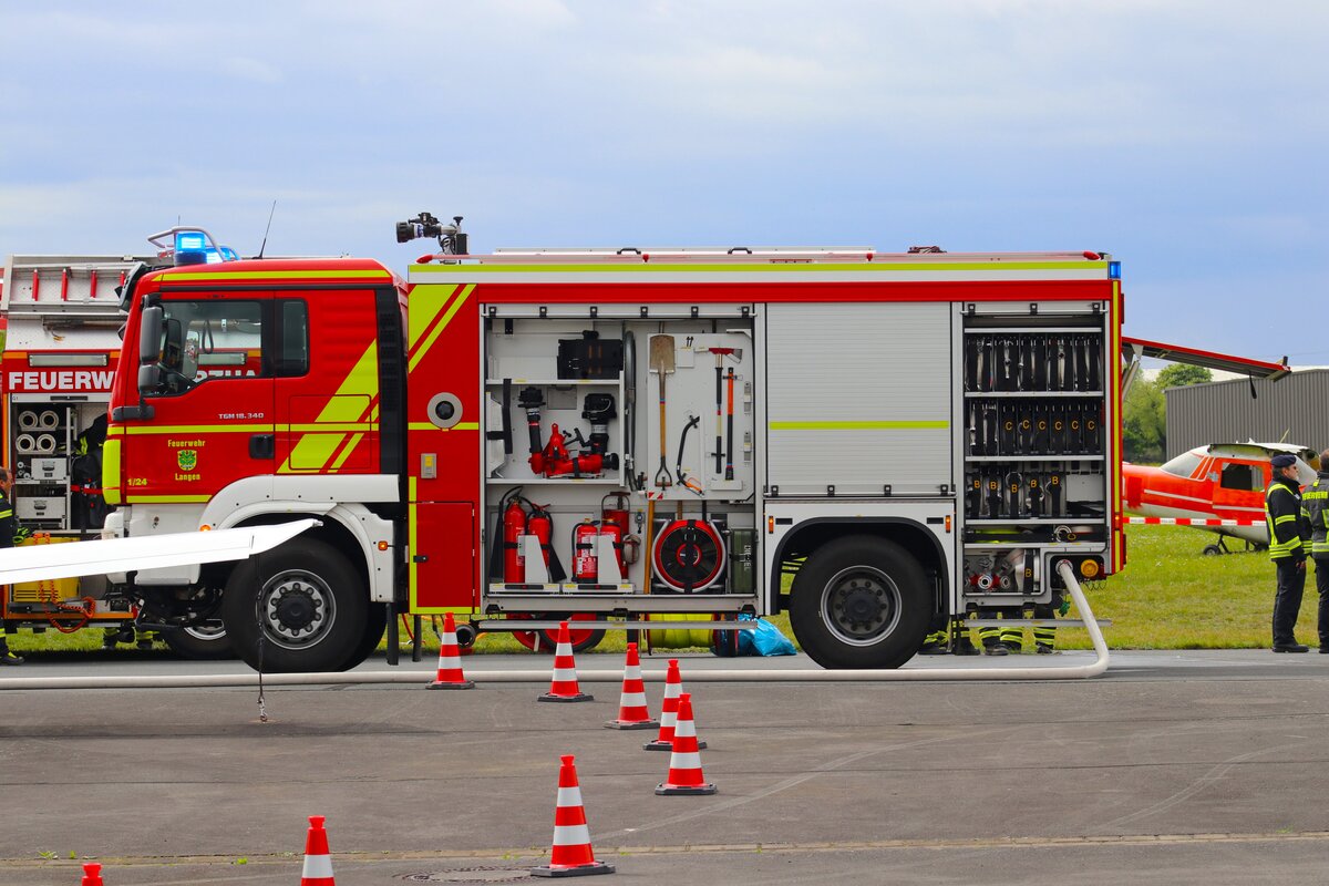 Feuerwehr Langen MAN TGM TLF bei einer Großübung am Flugplatz Egelsbach am 20.04.24. Dieses Foto ist per Teleobjektiv entstanden da man nicht auf dem Übungsgelände Fotos machen durfte