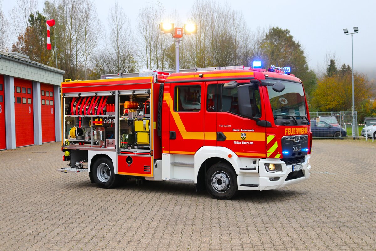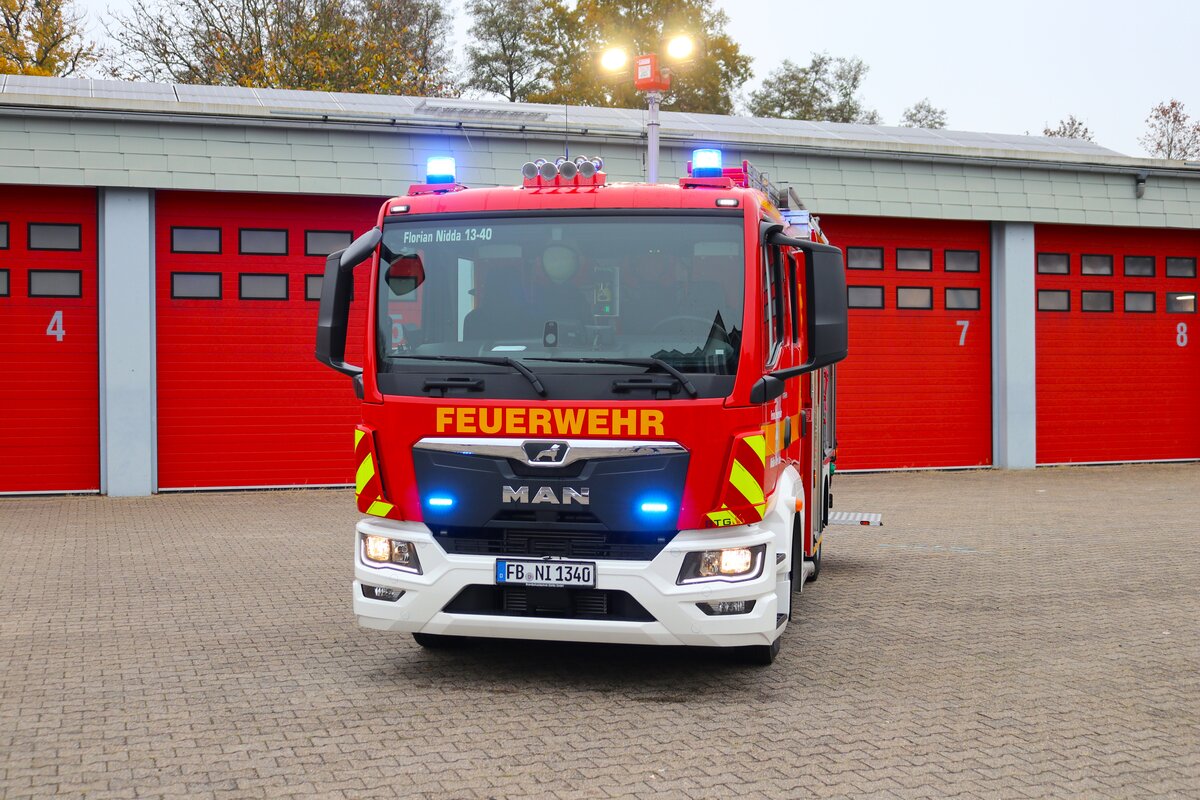 Brandneu Feuerwehr Nidda MAN TGL MLF (Florian Nidda 13-40) am 10.11.24 bei einen Fototermin. Danke für das tolle Shooting