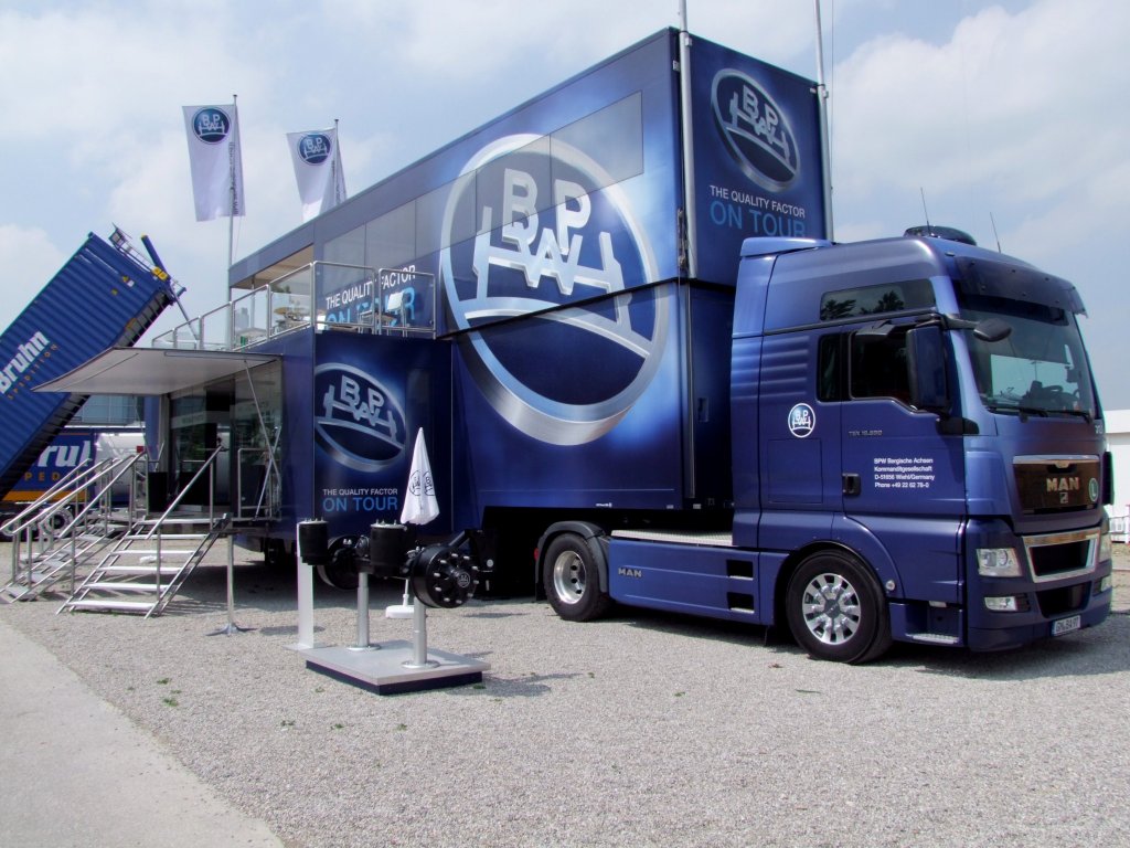 MAN TGX418.680 mit Messestandaufbau, anlässlich der Transport-Logistic2011;110513