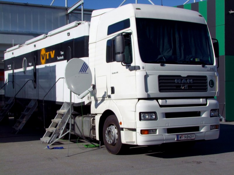 TGA18-430 mit Vario-TV Auflieger zur Übertragung des Bundesligaspieles SVR-RIED - SK Austria Kärnten vor dem FILL Metallbaustadion in RIED i.I.;080803