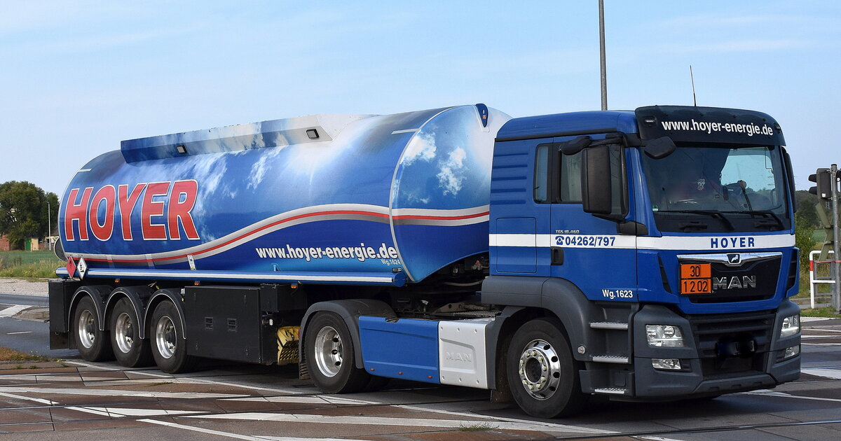 Wilhelm Hoyer GmbH & Co.KG (HOYER GROUP) mit einem Tanksattelzug mit MAN TGS 18.460 Zugmaschine beladen lt- UN-Nr.: 30/1202 mit Dieselkraftstoff/Heizöl (leicht)am 27.09.23 Höhe Bahnübergang Bahnhof Rodleben. Grüße zurück an den Fahrer !!!!