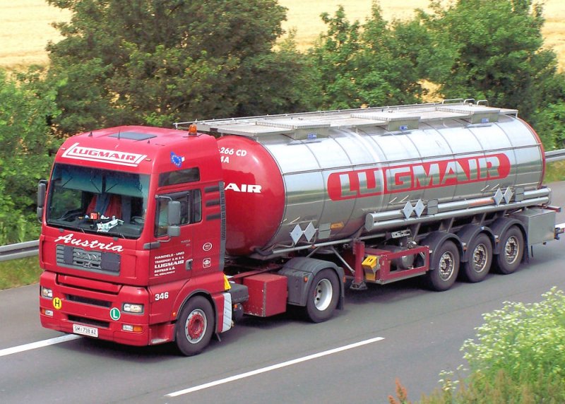 MAN Tank-Sattelzug - Spedition Lugmair Österreich - auf der A 61 Nähe Rheinbach Richtung Koblenz - 29.06.2006