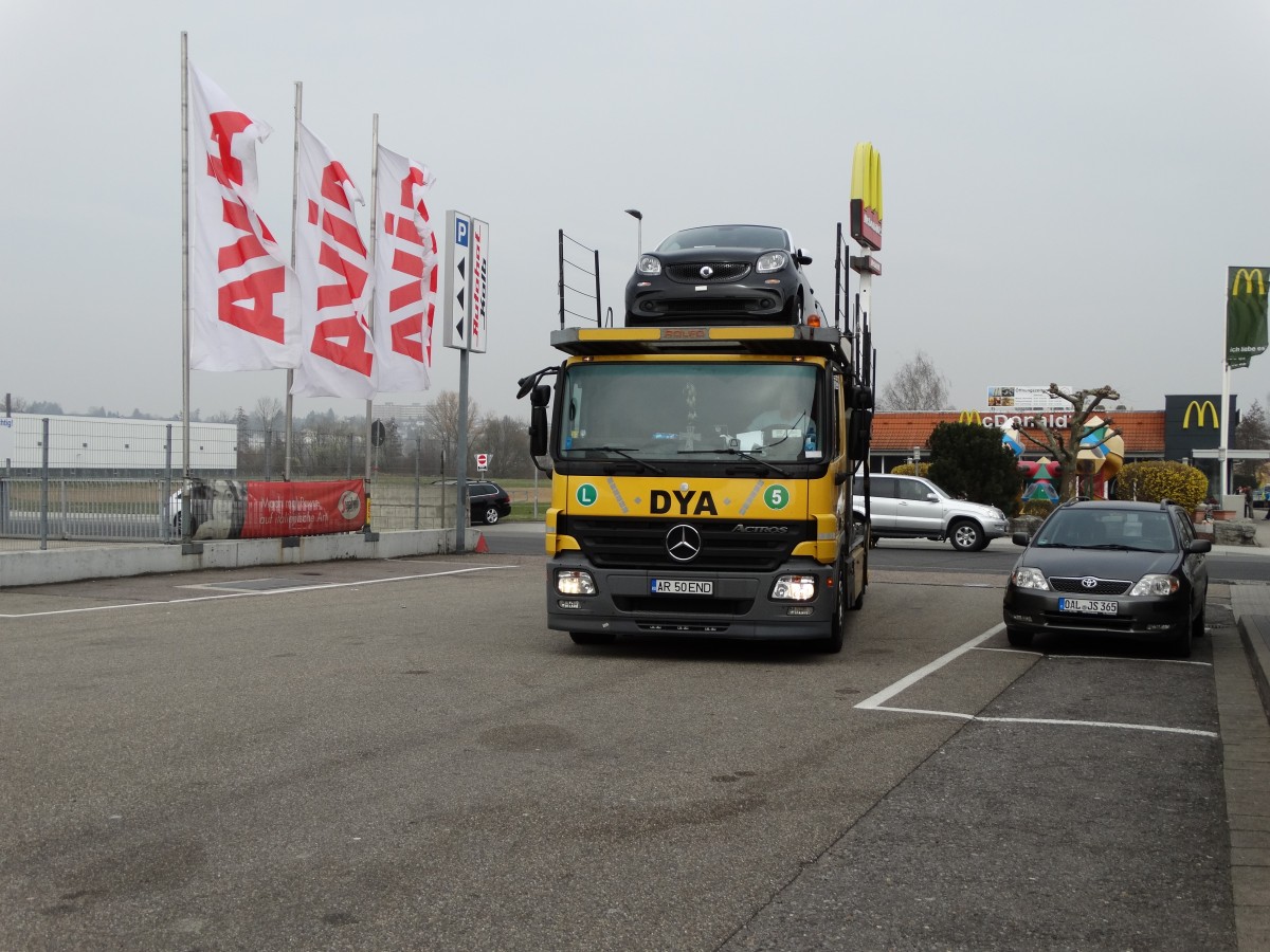 Mercedes Benz Actros Autotransporter am 21.03.15 in Sinsheim